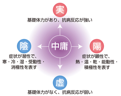 まず東洋医学的な体質の評価として、陰と陽、虚証と実証という考え方があります。